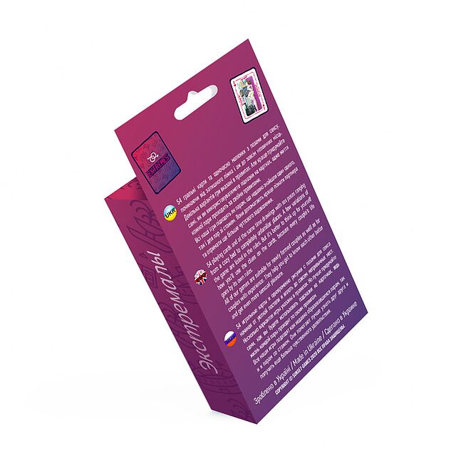 «Екстремали» – це гра на 54 картки, що вносить різноманітність у життя пар, пропонуючи набір оригінальних місць та дій, які можна здійснити зі своєю коханою людиною. Адже багато хто мріє про можливість займатися любов'ю в тих місцях, де зазвичай ніхто не очікує.