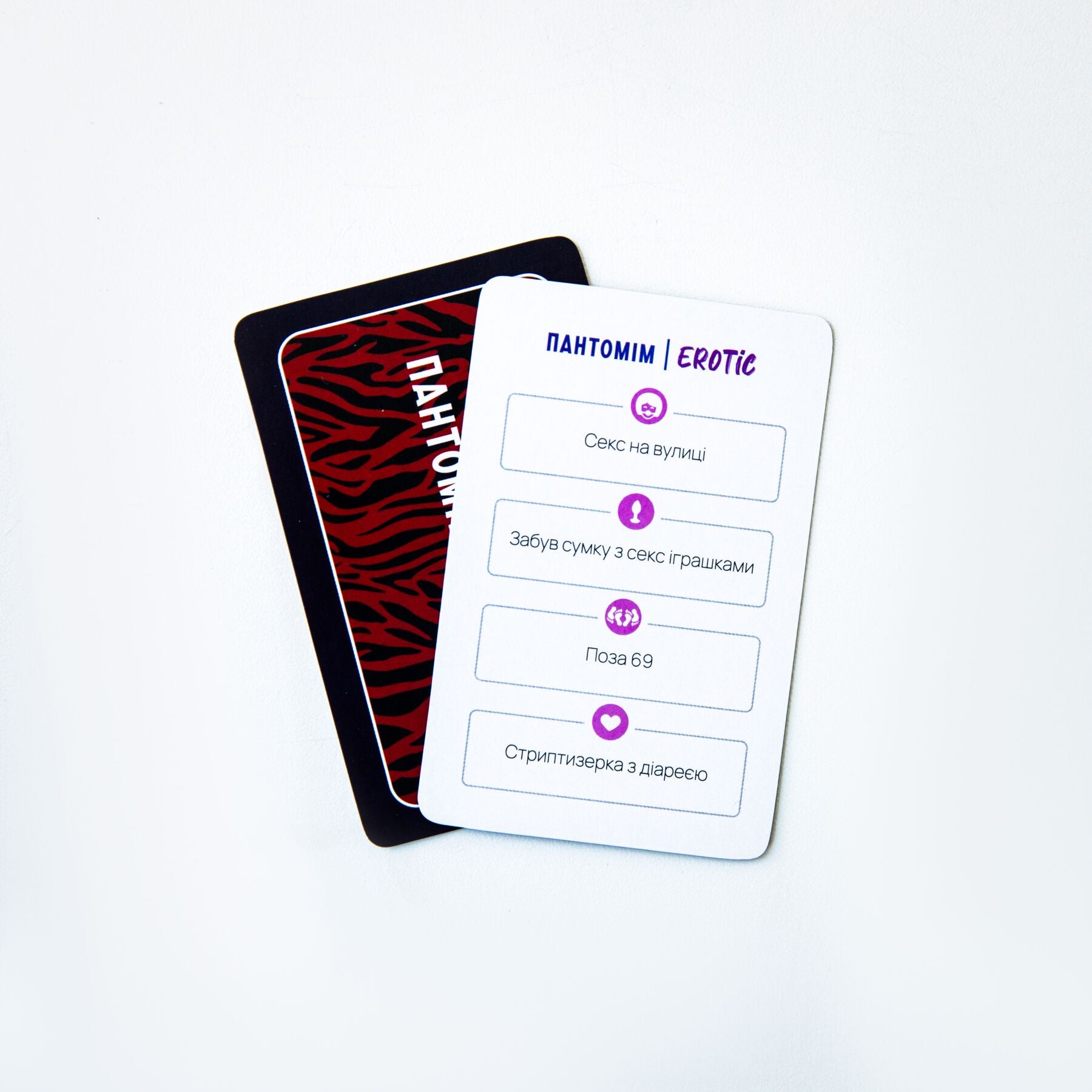 Це чудова гра для двох або великої компанії, яка наповнена дотепним гумором і легким еротичним відтінком. Кожен учасник може обрати завдання, яке йому до душі, проявити свої акторські таланти та поринути у світ сексуальних пригод.