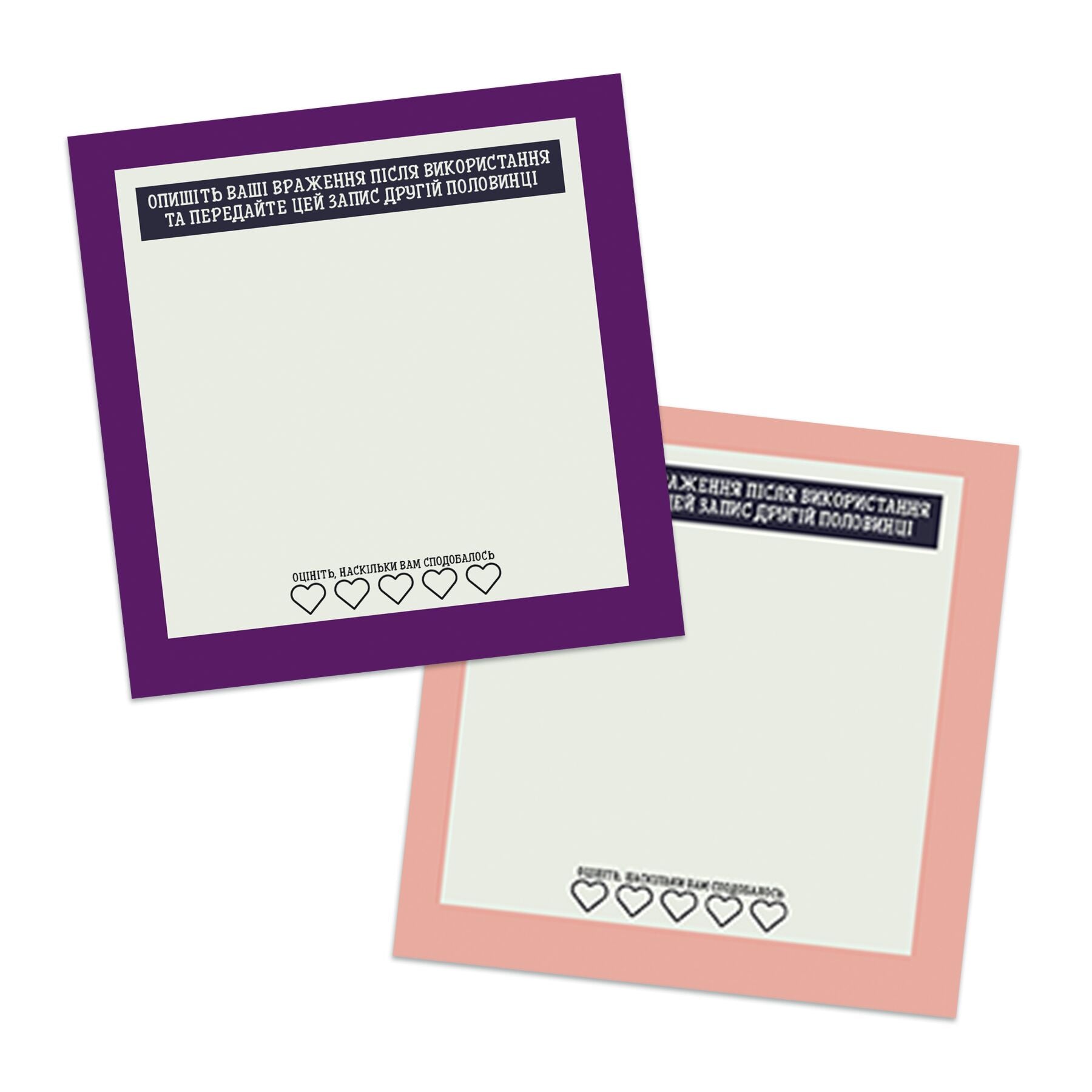 Після закінчення гри ви можете записати свої враження на зворотному боці картки та передати її партнеру.
