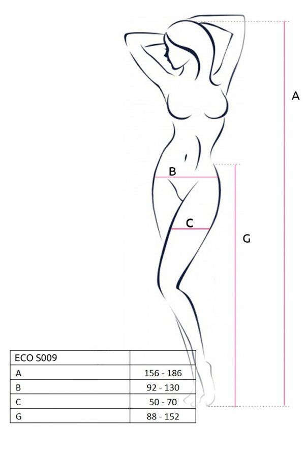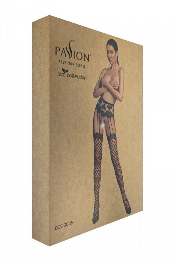 Колготки створені з якісних, приємних до тіла матеріалів, чудово тягнуться та ідеально облягають ноги, вигідно підкреслюючи їхню форму. Еротичні колготки-бодістокінг Passion ECO S009 мають оригінальний дизайн, що імітує панчохи з поясом, але залишаються цілісною конструкцією. Інтимні зони залишаються відкритими, що дозволяє не знімати білизну під час сексу.