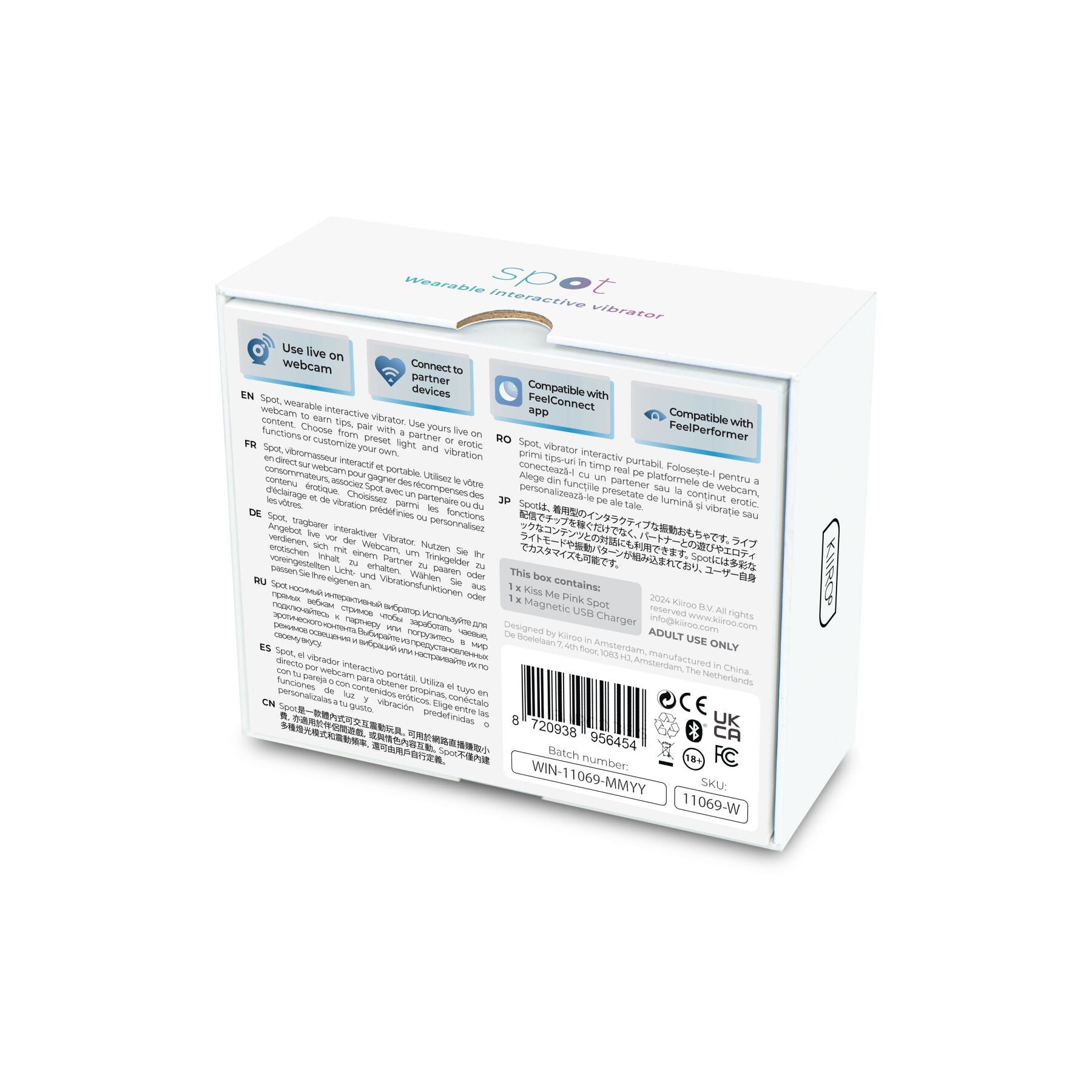 Виготовлений з преміум'якості гіпоалергенних матеріалів – безпечного ABS-пластику та медичного силікону – Kiiroo Spot гарантує абсолютну безпеку навіть при тривалому використанні. Його ергономічна форма з ультрагладкою поверхнею забезпечує неперевершений комфорт, а компактні розміри (97х36х83 мм) роблять його ідеальним для непомітного носіння з собою. Водонепроникна конструкція за стандартом IPX7 відкриває захоплюючі можливості для ігор у душі чи басейні.