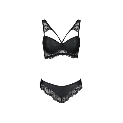 Комплект з еко-шкіри та мережива Loona Set black S/M - Passion, бюстгальтер і трусики: