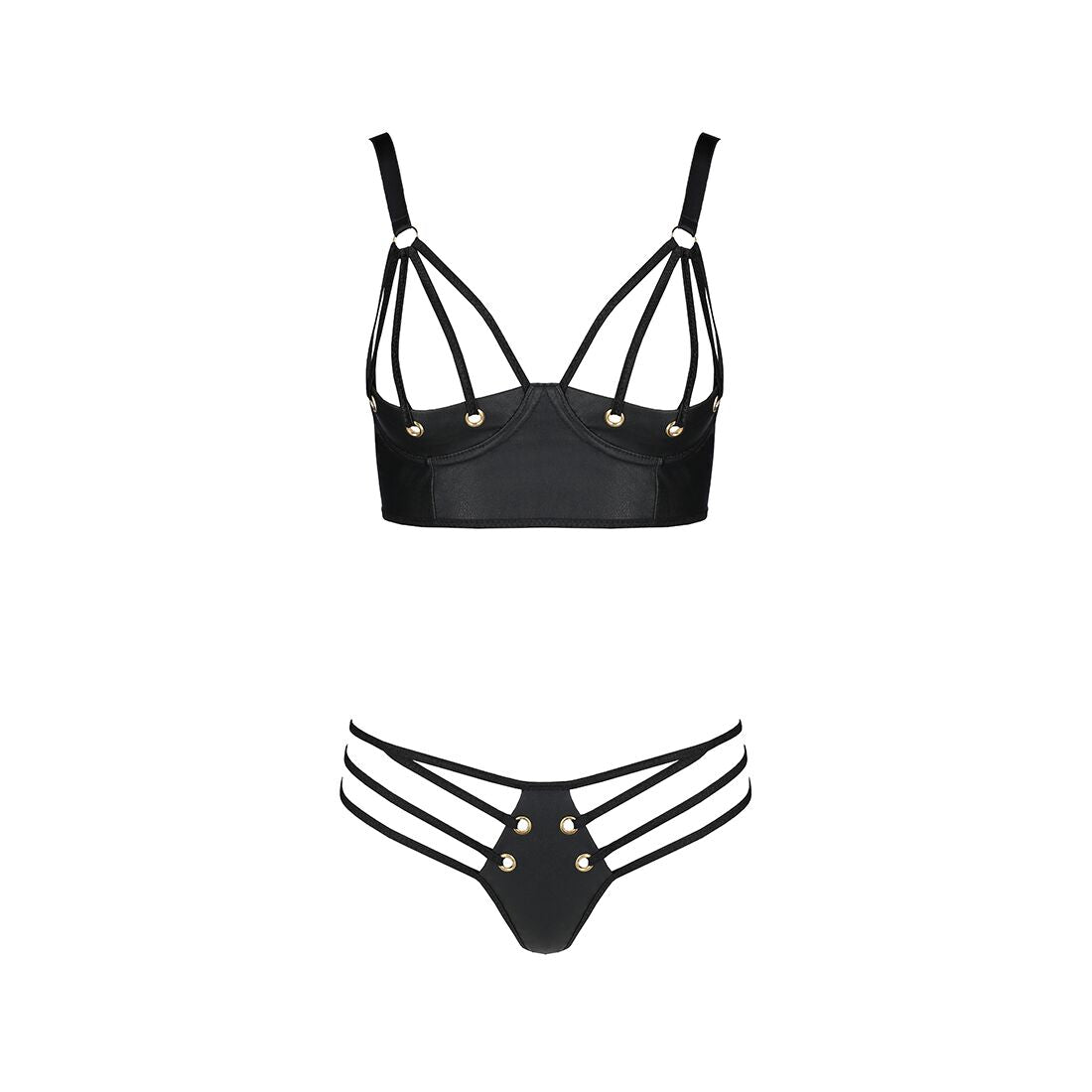 Комплект з екошкіри з люверсами та ремінцями Malwia Bikini black L/XL — Passion: