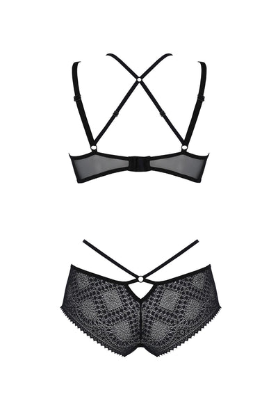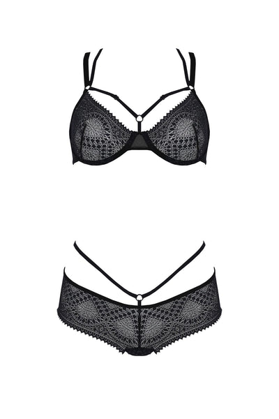 Шукаєте привабливий образ або стильну білизну для щоденного використання? У такому випадку, радимо звернути увагу на комплект Passion DROSERA BIKINI. Бюстгальтер з повними чашками та шортиками з низькою талією виготовлені з оксамитового мережива з візерунком, що ніжно облягає шкіру.
