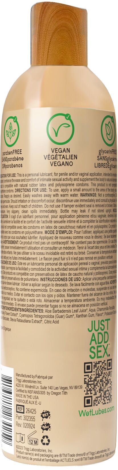 Пропонуємо вам придбати лубрикант на водній основі Wet Naturally — це максимально натуральна змазка (з органічним складом на 95 %) з рослинними екстрактами, які піклуються про вашу шкіру. Лубрикант має оптимальний pH, додатково зволожує та омолоджує ніжні ділянки тіла. Веганська формула робить його безпечним і універсальним. Він не містить гліцерину та парабенів і підходить для використання з іграшками та презервативами.