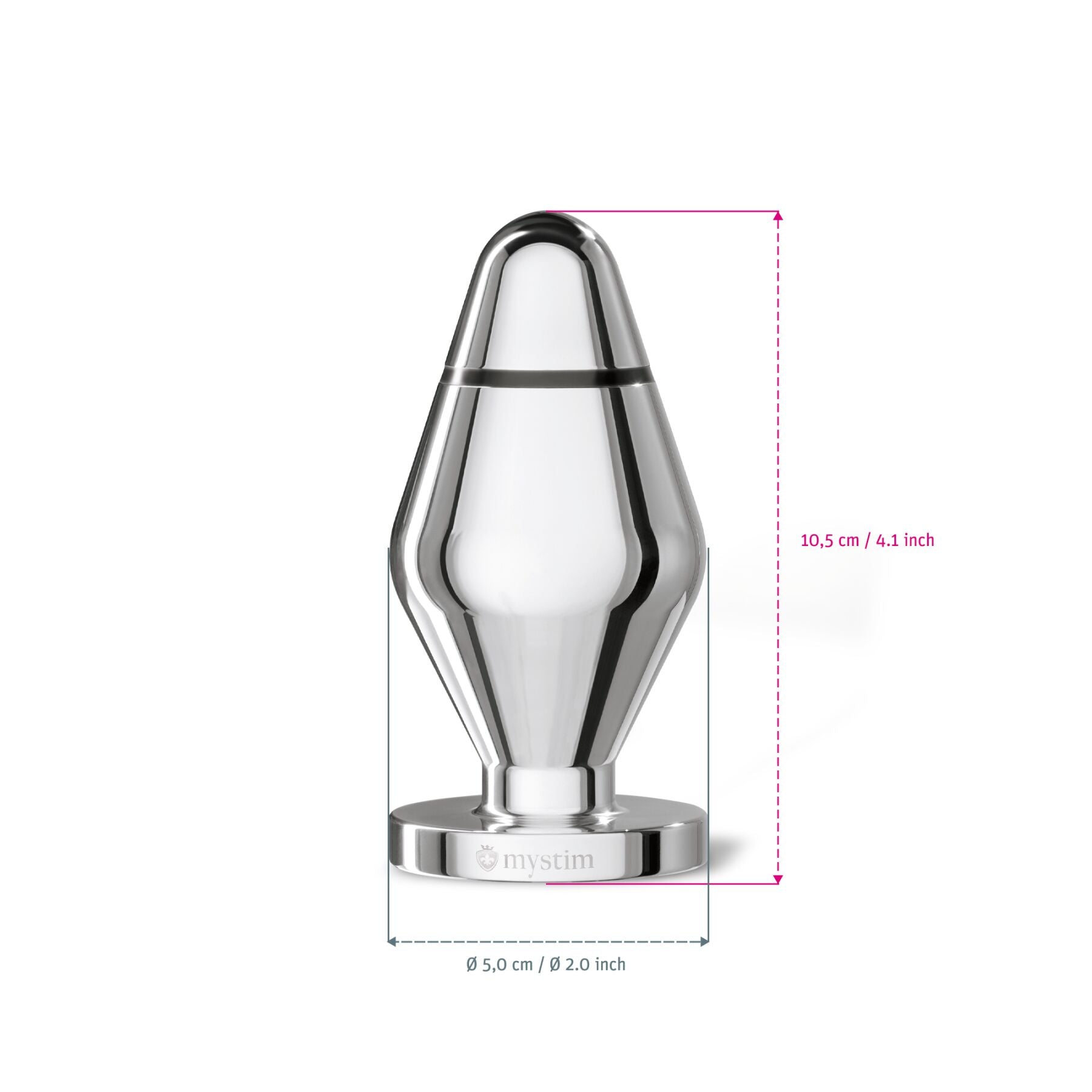 Це ідеальний варіант для тих, хто хоче вперше спробувати анальну електростимуляцію: гладка конічна пробка з м'яко заокругленим кінчиком комфортно входить всередину, а завдяки розширеній частині ви відчуєте приємне заповнення. Підключіть електроди (вам знадобиться спеціальний пристрій - Cluster Buster, Mystim Tension Lover або Mystim Pure Vibes) і насолоджуйтесь... Лише ви вирішуєте, чи будуть це ніжні години дразливих відчуттів, чи вибух емоцій за лічені хвилини!