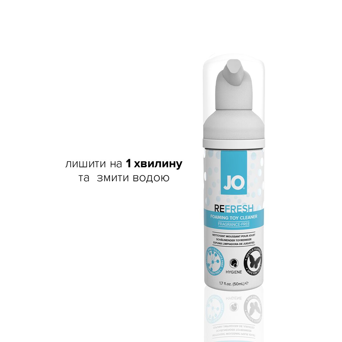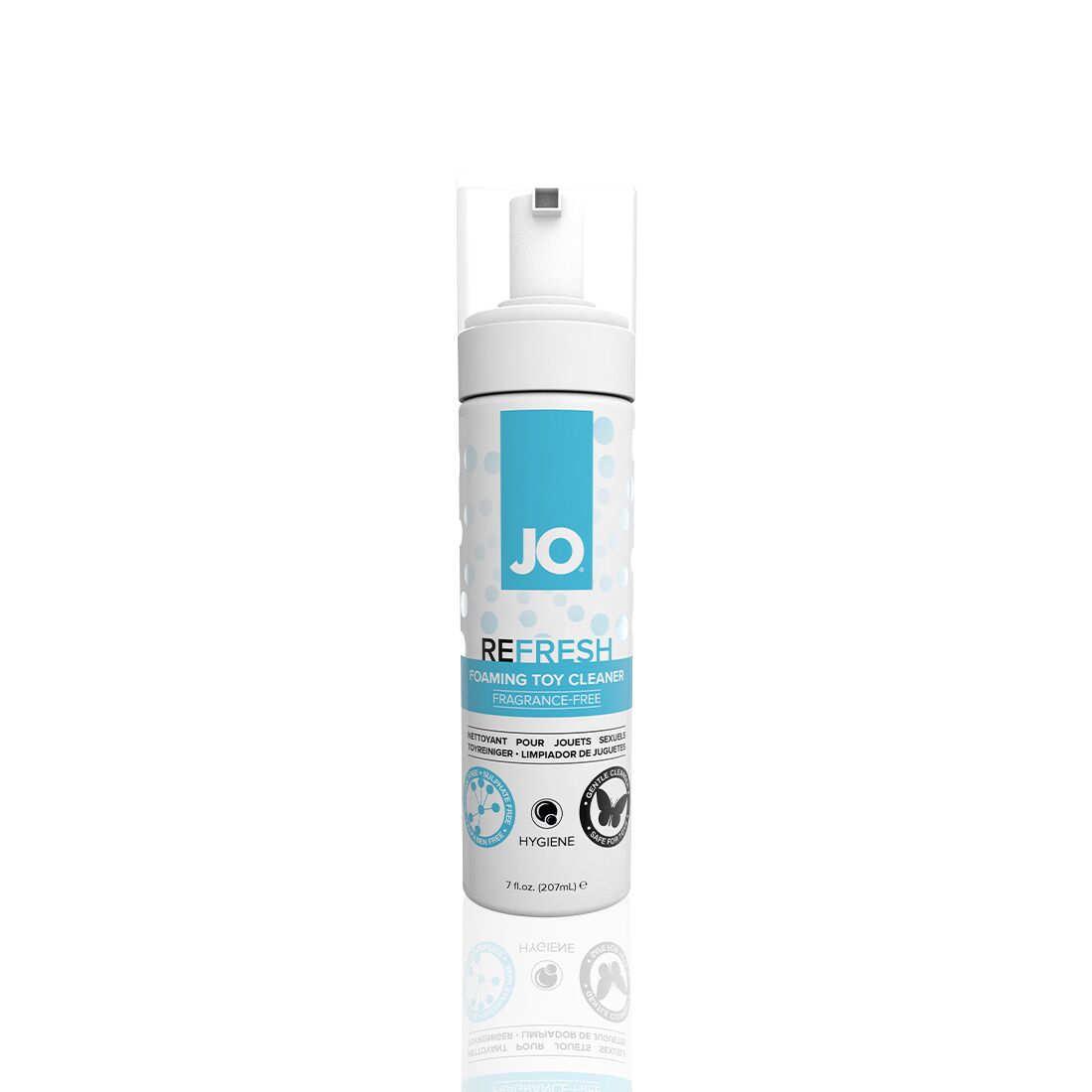 М’яка піна для очищення іграшок JO REFRESH — це дбайливий засіб для очищення секс-іграшок JO® REFRESH. Її ніжна формула швидко очищує без залишків. Відсутність триклозану та парабенів робить цей продукт безпечним для всіх типів матеріалів і для рук під час застосування. Достатньо нанести піну на іграшку, почекати 5–10 секунд, а потім змити. При сильних забрудненнях слід втирати засіб більш ретельно.