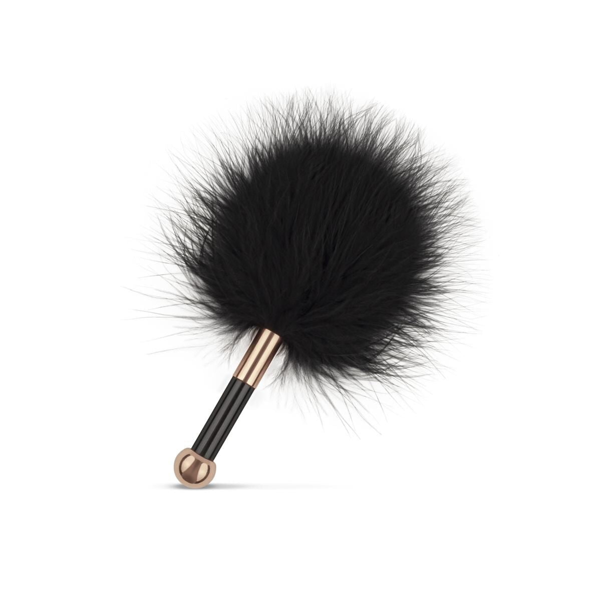 Комплект виготовлений з штучної шкіри та фурнітури чорного і рожево-золотого кольорів. Це незвичайне поєднання надає елегантності кожному аксесуару. М’які широкі наручники та поножі надійно фіксують зап’ястя та щиколотки, не завдаючи їм шкоди. Ланцюжки з карабінами дозволяють з’єднувати аксесуари між собою або прикріплювати їх до інших предметів, таких як ліжка чи хрестовини. Тонкий стильний нашийник виглядає дуже привабливо на ніжній шиї. Довгий повідець-ланцюг приєднується до кільця на нашийнику. Металеві затискачі для сосків мають м’які наконечники, щоб не травмувати чутливу шкіру грудей. Силу стиснення можна регулювати за допомогою повзунка. Затискачі прикрашені чорними пір’ям. Довга шльопалка і м’яка коротка лоскоталка можуть використовуватися окремо або разом: чергуючи ніжне погладжування і відчутне шльопання, ви зможете створити справжню бурю збудження. Закрийте коханому очі широкою атласною стрічкою — і сміливо експериментуйте з його тілом, яке прагне ласки та покарання. Додайте до солодкого тортури краплі воску з свічки, що тане при низькій температурі, і ви отримаєте неймовірний набір, з яким можна експериментувати безкінечно.
