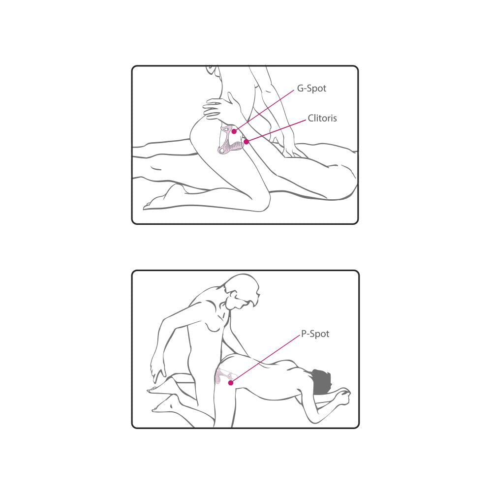 Два моторчики створюють потужну вібрацію в різних режимах - всього доступно 10 варіантів. Одне джерело вібрації розташоване у кліторальному вібраторі, а інше на протилежному кінці ерекційного кільця - у горбку для стимуляції точки G. Таке розташування вібраційних елементів дозволяє під час кожного руху члена всередині піхви стимулювати різні ерогенні зони, даруючи неймовірне задоволення.