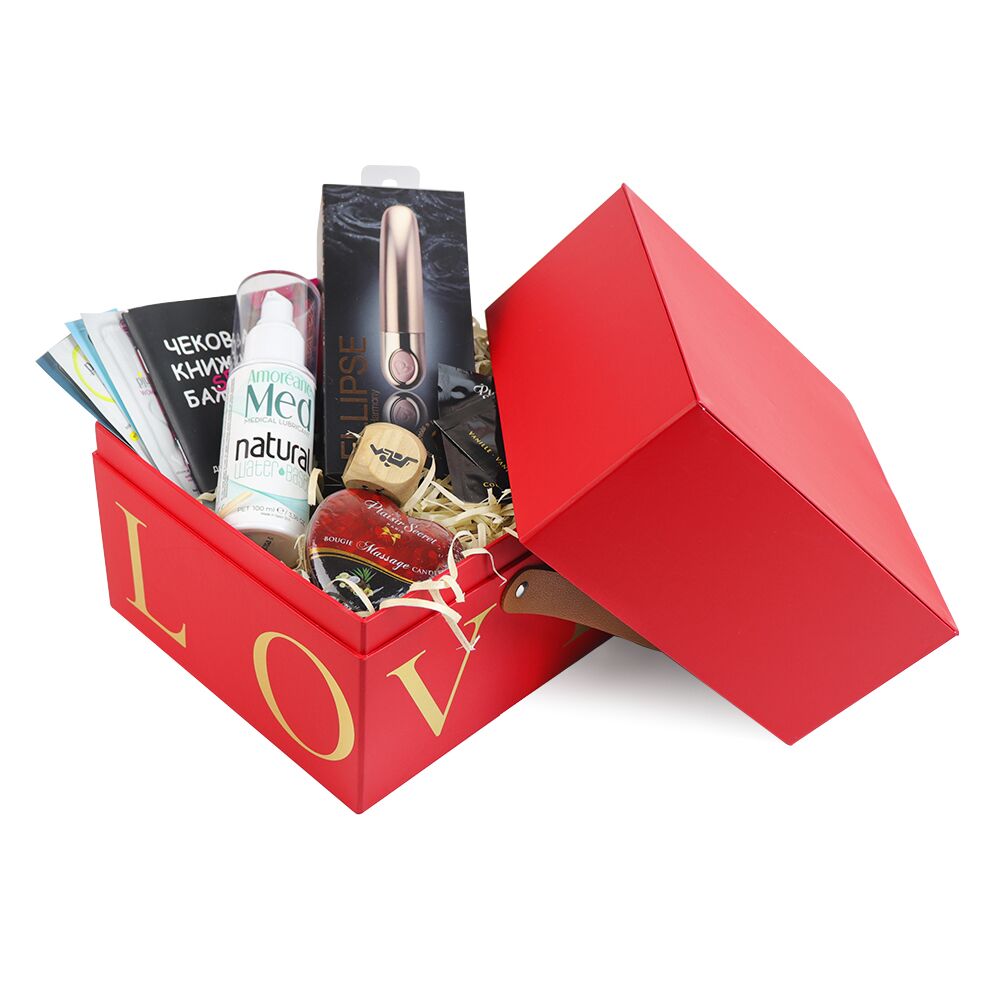 Обираючи наші подарункові набори, ви не лише економите час, але й отримуєте комплект секс-іграшок, лубрикантів та інших товарів на 15% дешевше. Наші набори подарують вам та вашому партнеру незабутні вечори, перетворюючи вашу любовну гру на захоплюючу пригоду. Упакований в елегантну червону коробку з щільного картону з романтичним написом "LOVE" та ручкою зі штучної шкіри, набір стане чудовим подарунком на будь-яку нагоду.