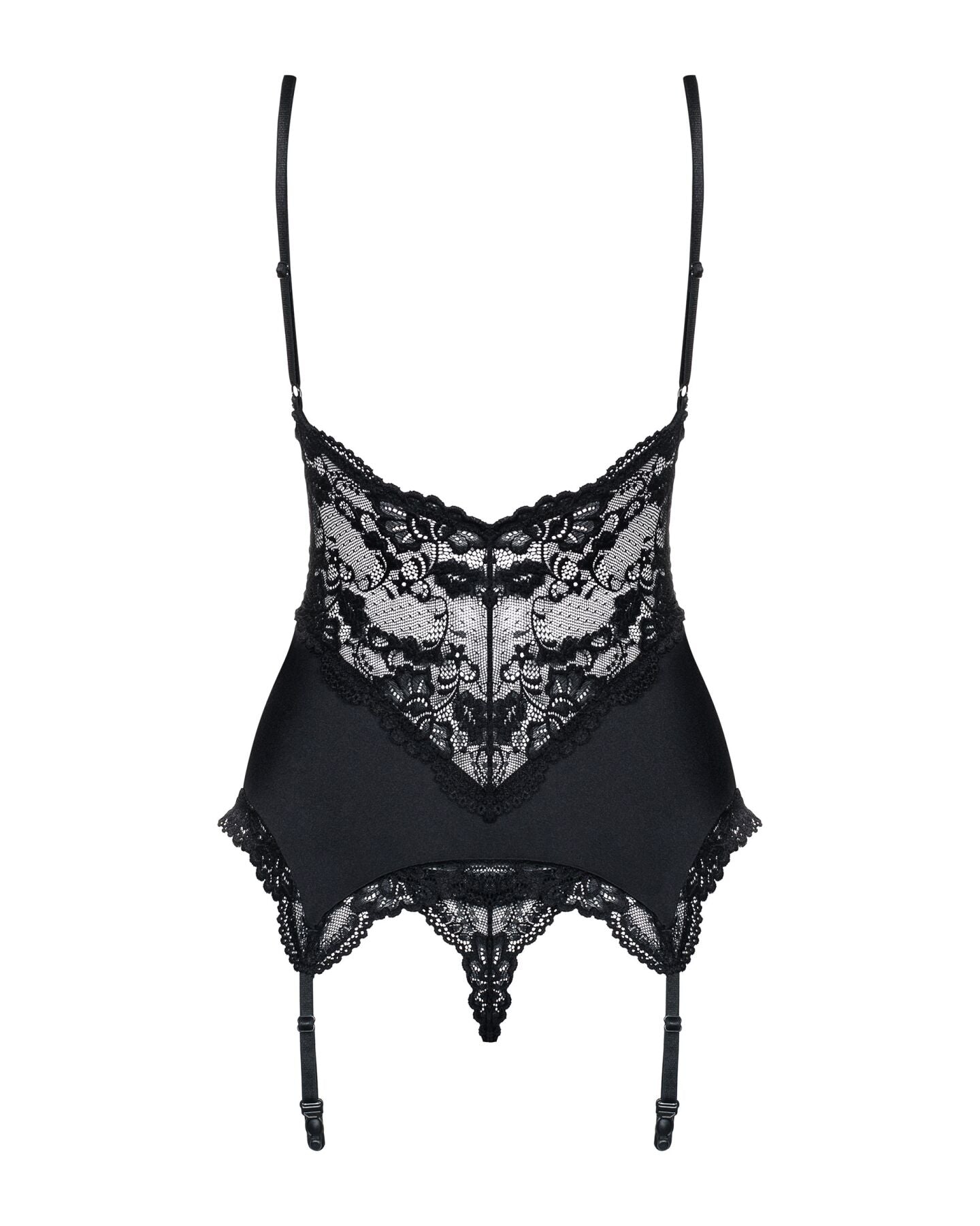Комплект містить сатиновий мереживний корсет Obsessive 810-BAB-2 babydoll & thong та тангу.