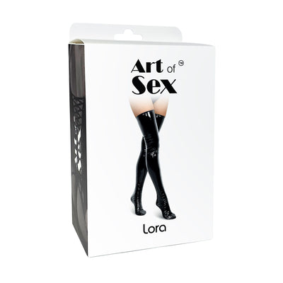 Вінілові панчохи Art of Sex - Lora справжній витвір мистецтва. Вдягнувши їх хоча б один раз, ви не зможете не захоплюватися своїм виглядом. Вони щільно облягають ноги, але при цьому забезпечують комфорт під час носіння. Поєднуйте вінілові панчохи з вініловим боді або комплектом білизни та насолоджуйтеся тим, як ви підкорюєте свого партнера.