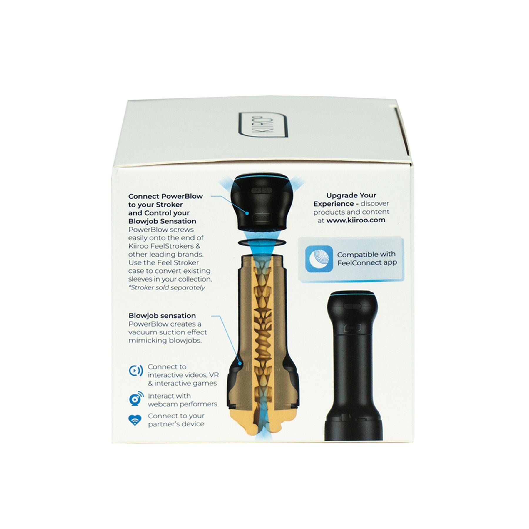 Вакуумна інтерактивна насадка Kiiroo PowerBlow — це простий спосіб отримати мастурбатор мрії! Насадка — це невеликий пристрій, який достатньо закріпити на мастурбатор серії Kiiroo Feel, щоб отримати неймовірно потужну інтерактивну іграшку для мінету!