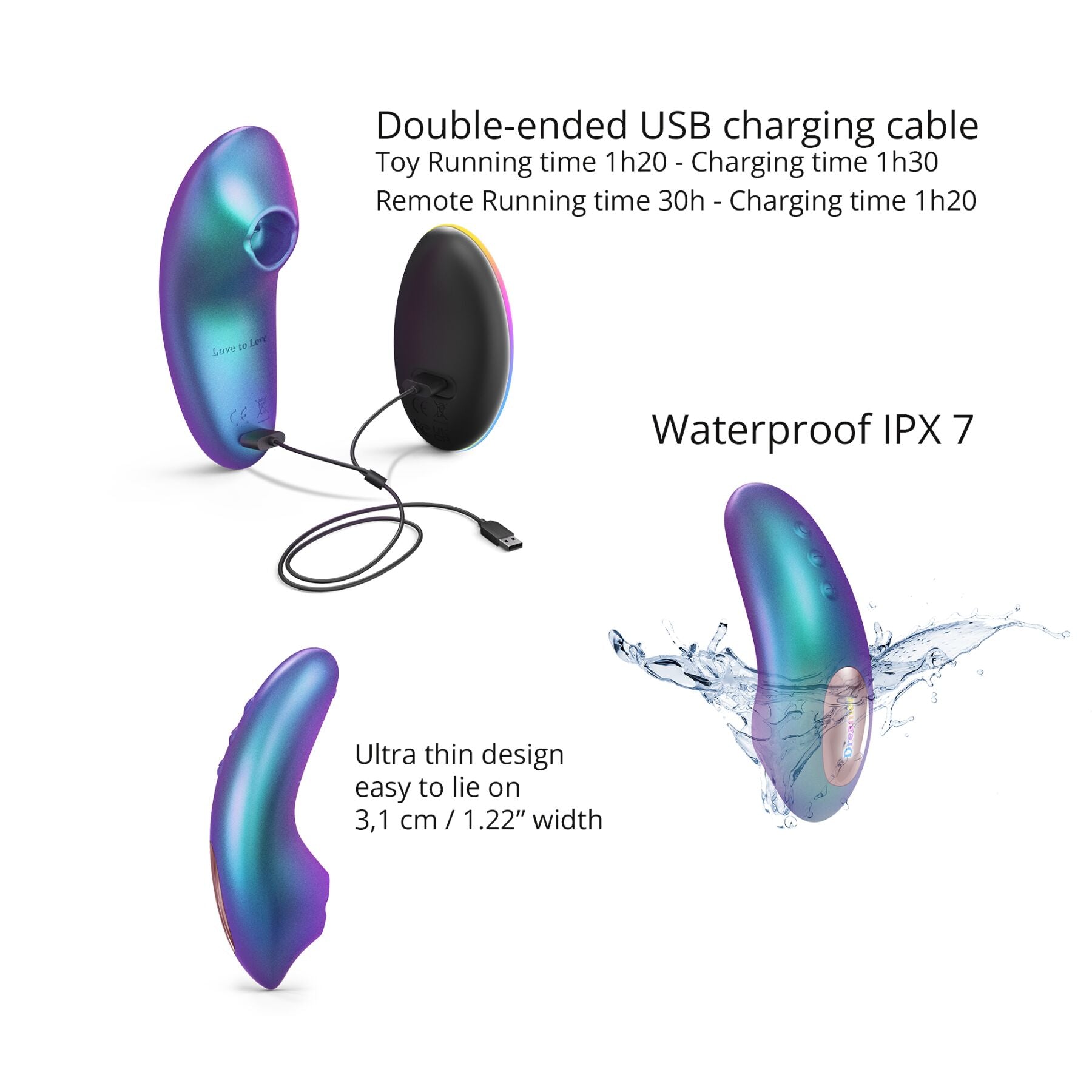 повна водонепроникність (IPX7): стимулятор можна промивати теплою водою з нейтральним милом і, звичайно, використовувати у ванні для ще більш глибоких відчуттів від вакууму.