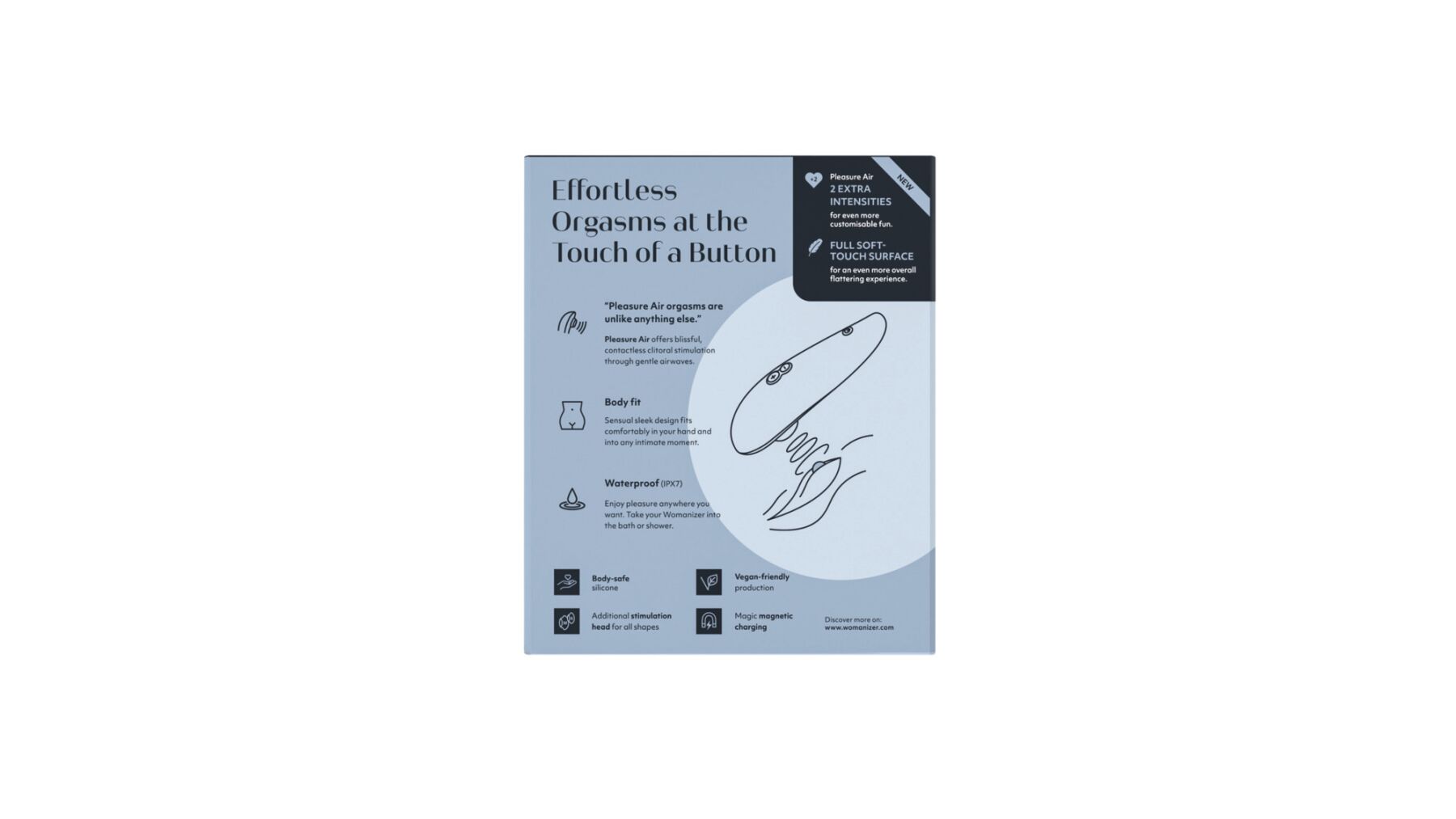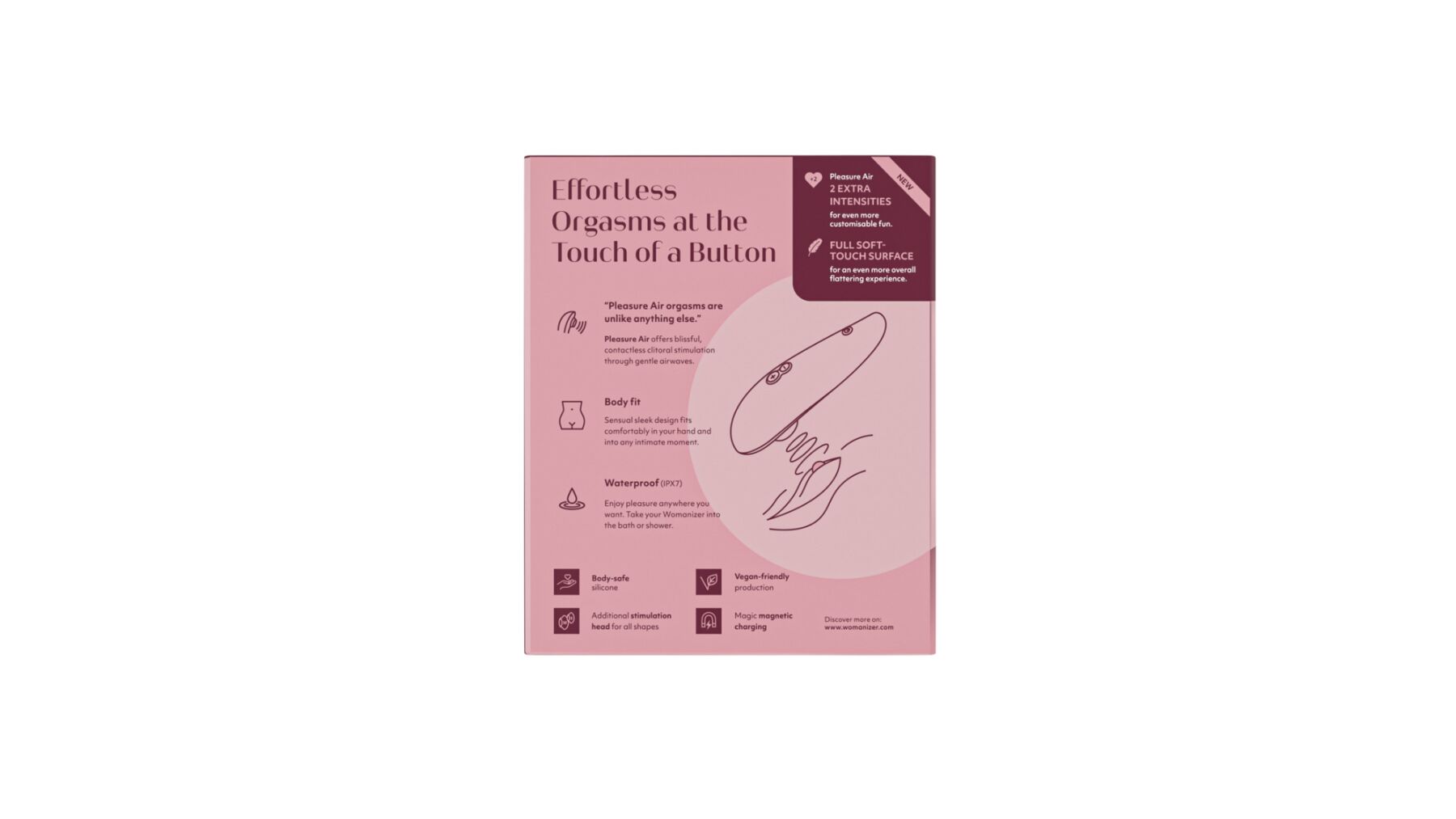 Іграшка працює за запатентованою технологією Pleasure Air, забезпечуючи ніжну, безконтактну стимуляцію клітора повітряними хвилями. Цей ефект складно відтворити чимось іншим — саме за це Womanizer цінують мільйони жінок по всьому світу.