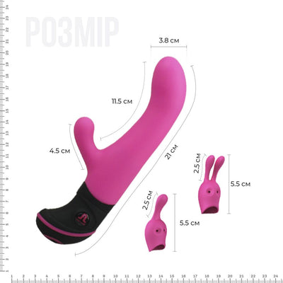 Зігнута голівка вібратора ідеально масажує точку G. Насадки чудово передають вібрацію на клітор, ніжно його пестячи і лоскочучи. «Подвійні вушка» дбайливо пестять клітор з боків, «одинарне вушко» м'яко впливає на сам клітор, а без насадок можна інтенсивно стимулювати клітор, використовуючи тиск і тертя.