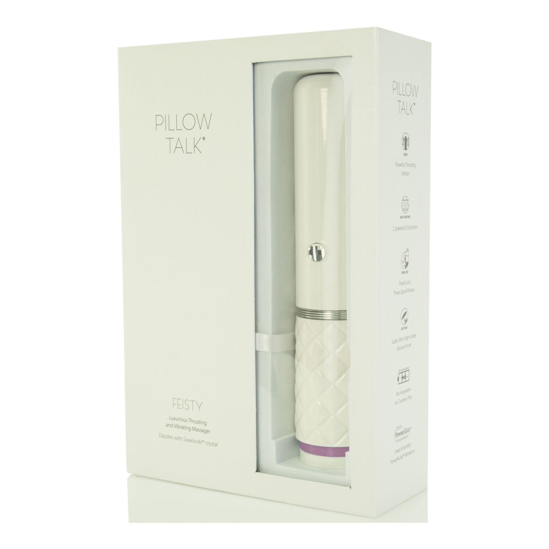 Цей унікальний та розкішний пристрій поєднує в собі елегантні лінії, вдалі рішення та найсучасніші функції. Вібратор-пульсатор з присоскою Pillow Talk - Feisty Thrusting Vibrator продуманий до деталей: потужний мотор, стильний дизайн, зручна присоска та, звичайно, вражаючий багатогранний кристал Swarovski на корпусі.