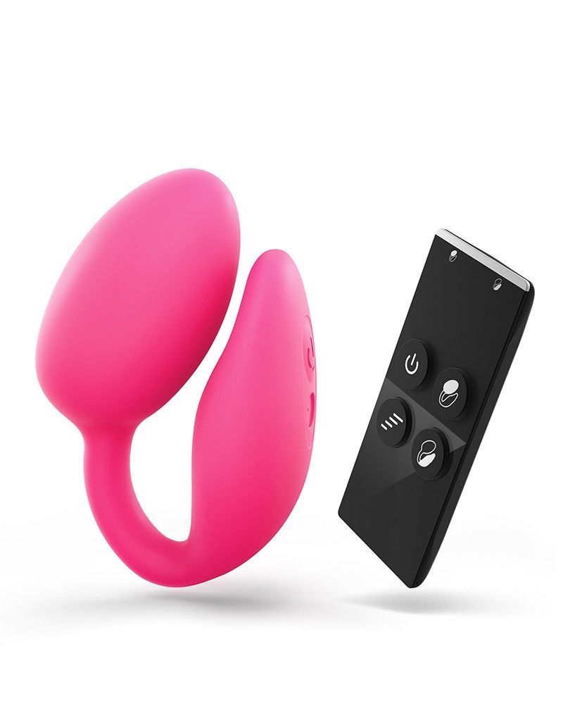 Яскравий рожевий вібратор подарує не менш яскраві оргазми та відкриє нові можливості для найсміливіших ігор у будь-якому місці завдяки компактному пульту управління. Ви зможете насолоджуватися потужними вібраціями, самостійно регулюючи їх інтенсивність і частоту, або передати пульт партнеру і повністю насолодитися ефектом несподіванки. Це також чудова можливість спробувати секс утрьох, залишаючись наодинці з партнером: введіть вібратор під час анального сексу та насолоджуйтеся стимуляцією всіх чутливих зон!