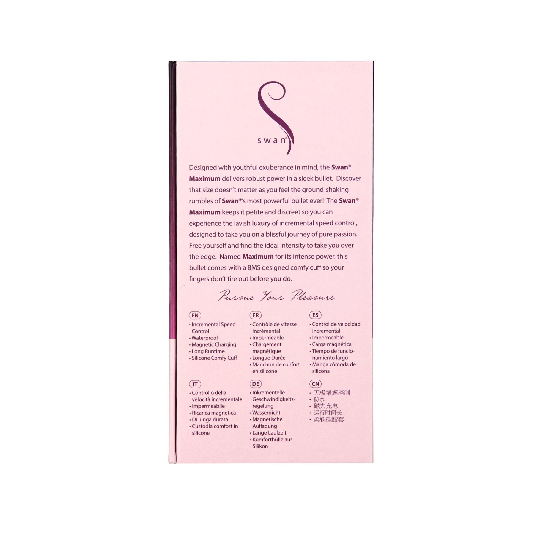 Віброкуля Swan Maximum — це вишукане джерело фізичного та естетичного задоволення, яке завжди буде під рукою. З цією кулею ви можете насолодитися чудовим вечором наодинці або додати чуттєвості до вашого побачення. Дійте за покликом фантазії, і віброкуля Swan Maximum не підведе!