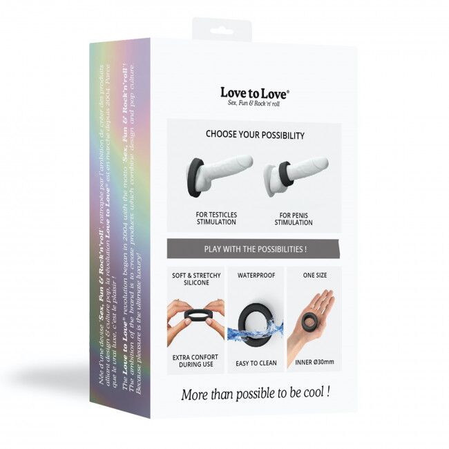 Диаметр широкого эрекционного кольца Love To Love COOL RING составляет 3 см, а оно может растягиваться до примерно 8 см. Примеры использования можно найти непосредственно на упаковке. Легко очищается теплой водой и подходит для любого размера пениса.