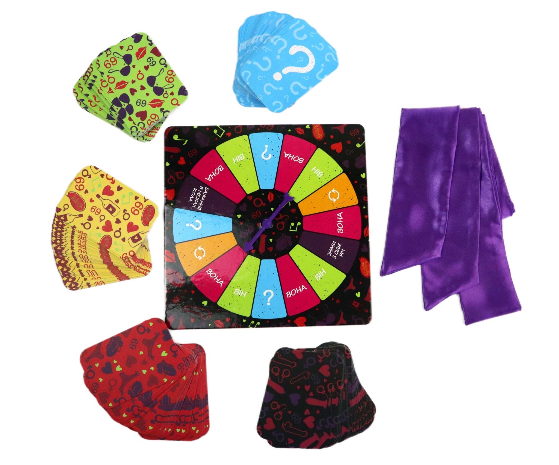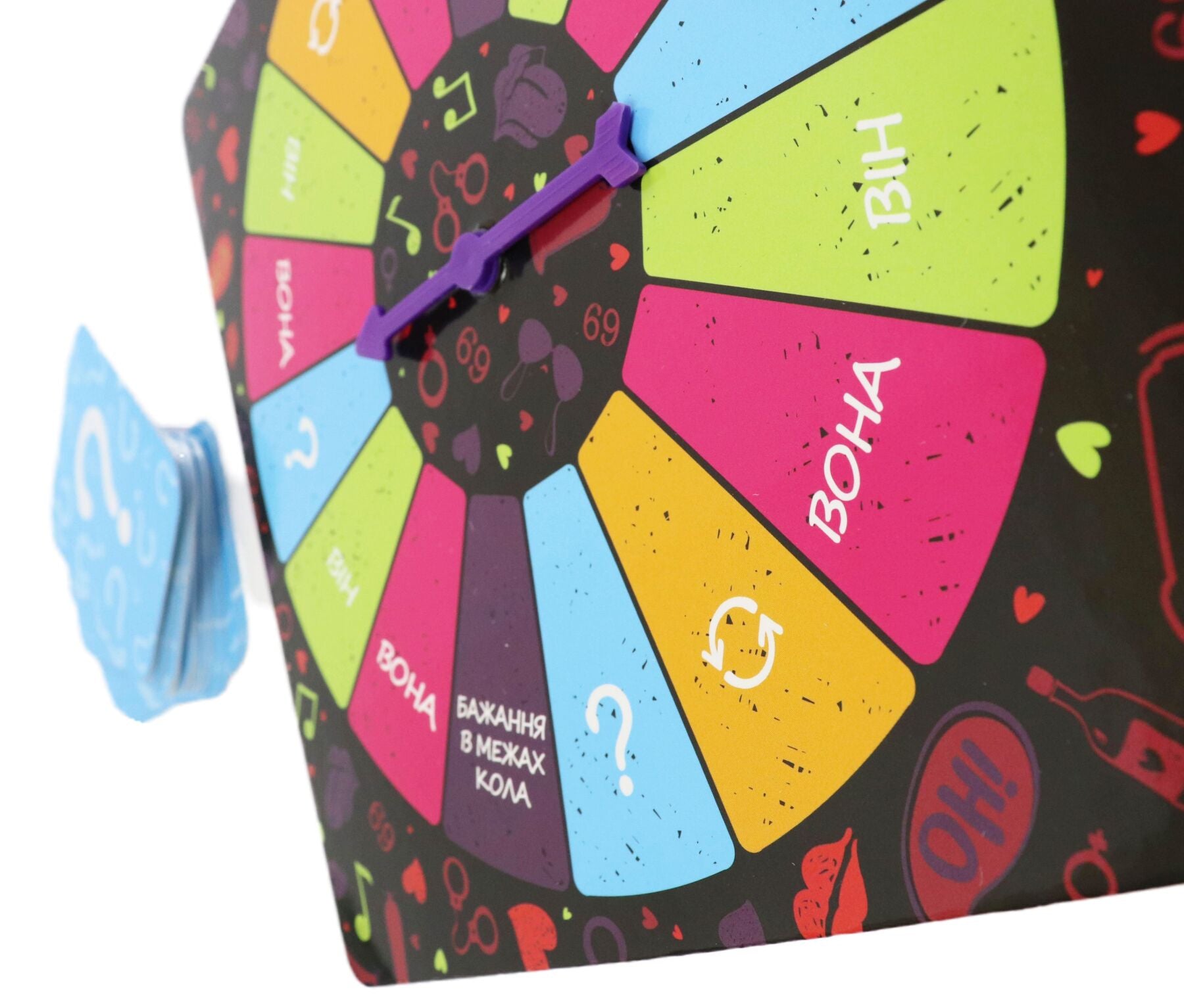 - Механика игры проста: крутите стрелку, тянете карточку и выполняете задание.