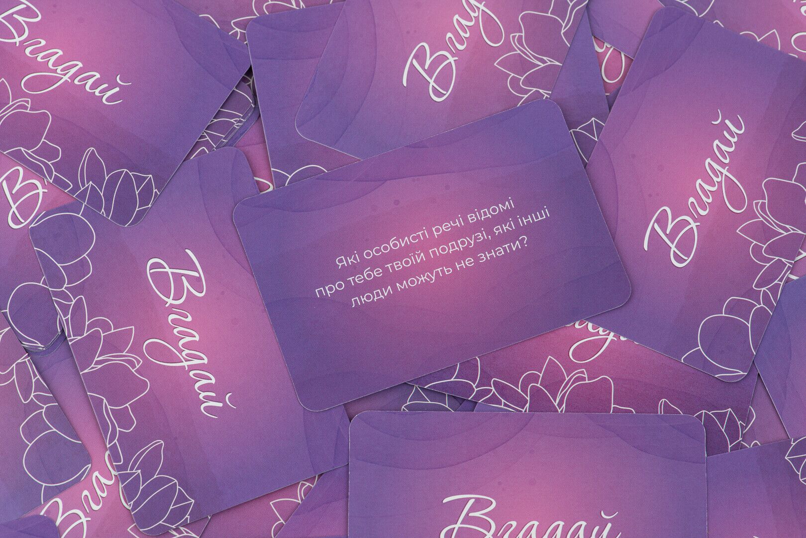 Кратко о правилах: Правила чрезвычайно простые: вы по очереди тянете карточки, чередуя колоды «Расскажи» и «Угадай», и отвечаете на вопросы из них. Карточки «Расскажи» помогут вам открыться и поделиться своими мечтами, фантазиями и воспоминаниями. В карточках «Угадай» вы найдете вопросы о ваших подругах, на которые нужно отвечать именно вам, погружаясь в детали их мыслей, желаний и надежд. Ваши встречи станут еще более наполненными с нашей игрой! Тип игры: для вечеринок, девичников, для девушек 18+. В комплекте: 120 вопросов. Материал: ламинированный картон.