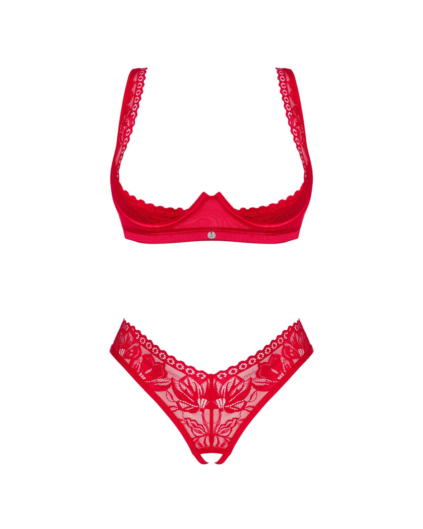 Комплект белья Obsessive Lacelove cupless 2-pcs set: Красный, Откровенный, Незабываемый!