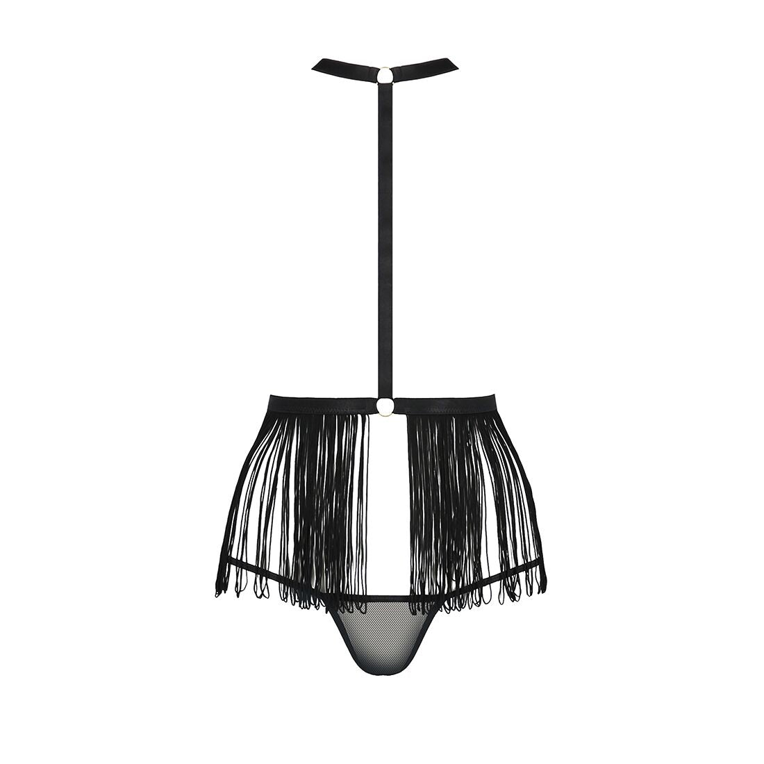 Этот откровенный и соблазнительный набор может стать вашим главным инструментом в искусстве соблазнения. Во-первых, его можно надеть поверх платья или белой блузки, подчеркивая свою сексуальность перед окружающими. А во-вторых, его можно носить на абсолютно обнаженном теле, заявляя о готовности к ласкам в любой момент! Чувственные ремни, которые элегантно подчеркивают фигуру, бахрома и миниатюрные стринги сделают ваш образ незабываемым. Ремни имеют эластичность и регулируются для идеальной посадки.