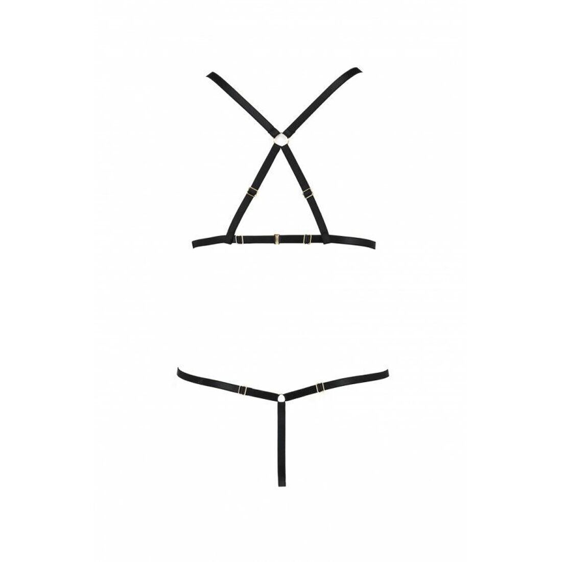 Лишь несколько ремешков, соблазнительно облегающих тело, и ничего лишнего! Предлагаем вам приобрести комплект белья с ремешками ARMANDA SET black — набор для самых смелых и страстных. В комплект входят стринги и бюстгальтер, изготовленные из регулируемых эластичных ремней. Бюстгальтер можно носить и поверх одежды как стильную портупею!