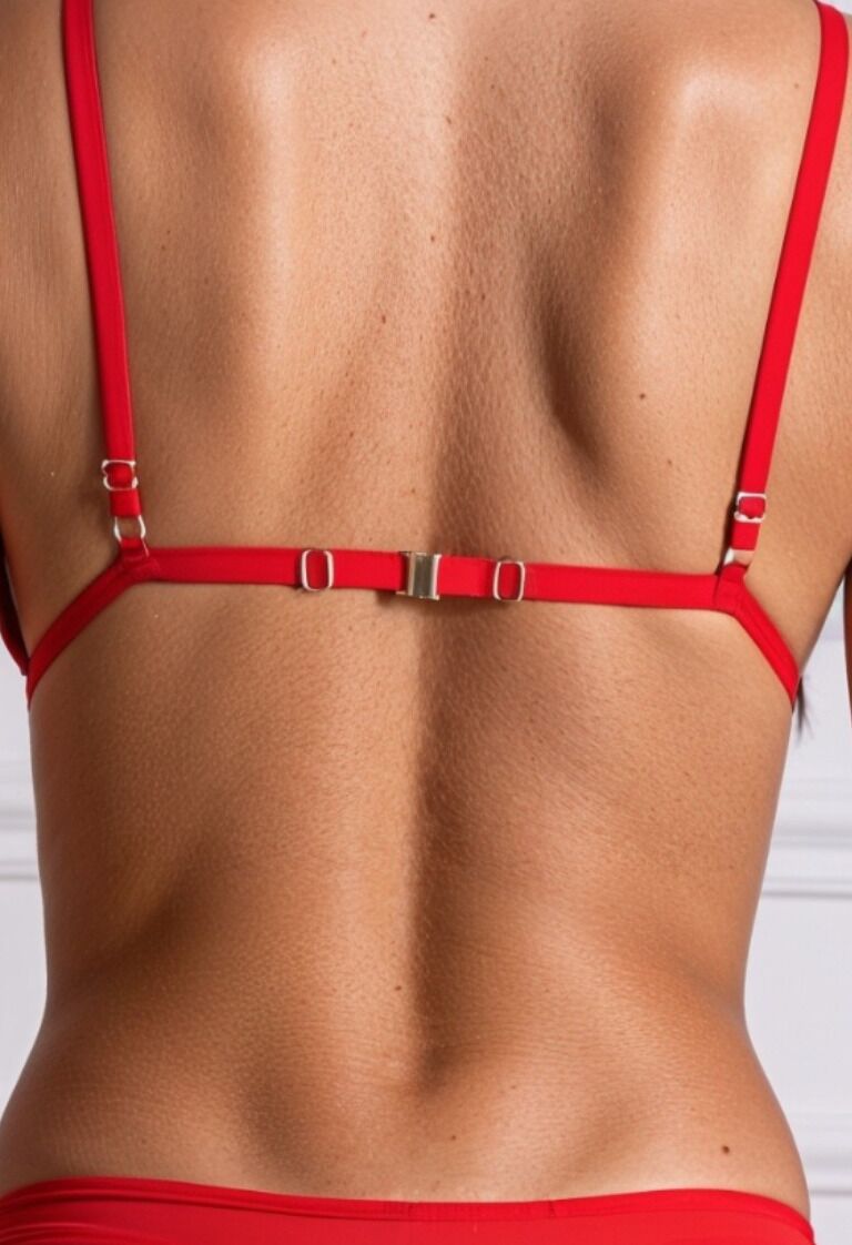 Лёгкий кружевной бюстгальтер с декоративными ремешками изящно акцентирует зону декольте, а регулируемые бретели обеспечивают идеальную посадку и комфорт в течение всего дня.