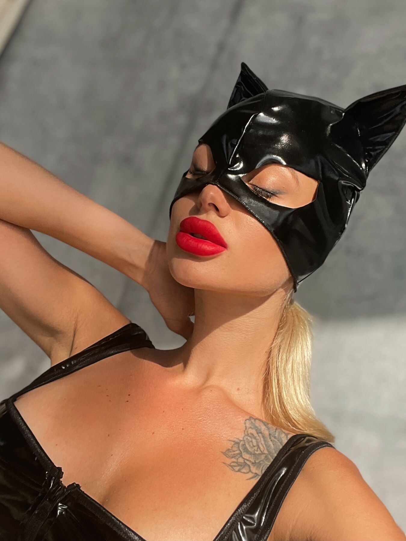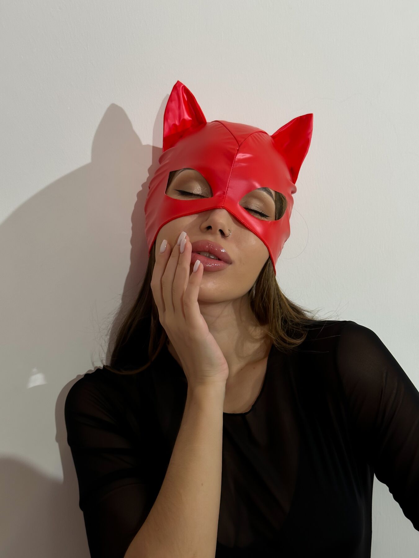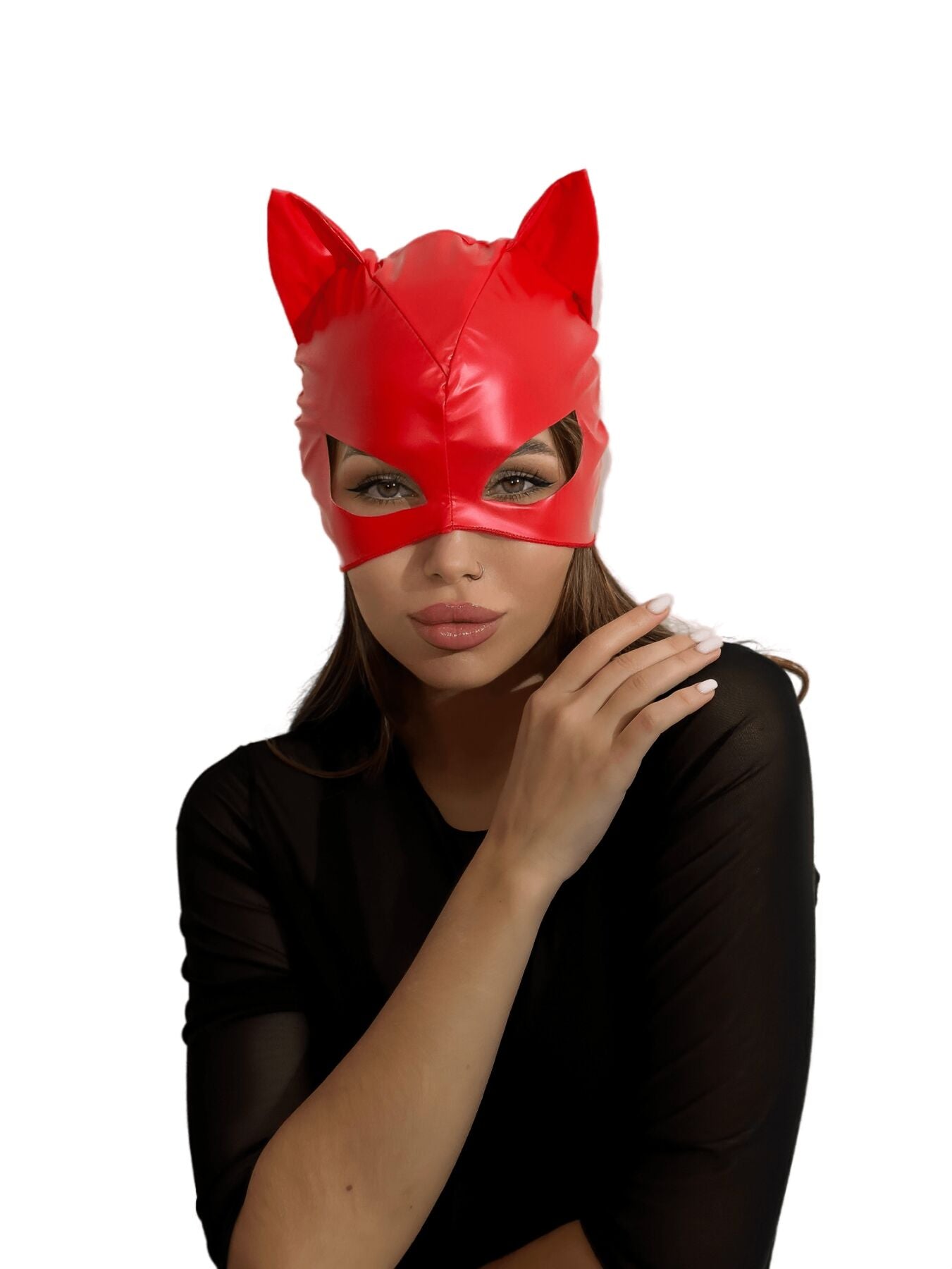 Лакированная маска "Кошка" изготовлена из мягкого и эластичного материала, напоминающего лакированную кожу. Маска имеет приятную не синтетическую подкладку и аккуратные швы, которые не вызывают дискомфорта во время ношения. Игривые мягкие ушки и "кошачий" разрез для глаз помогут вам почувствовать себя настоящей героиней фильма или комиксов о супергероях. Маска закрывает большую часть лица и надевается, как шапочка, что позволяет обойтись без яркого макияжа — вы можете просто подчеркнуть глаза и добавить акцент в виде красной помады.
