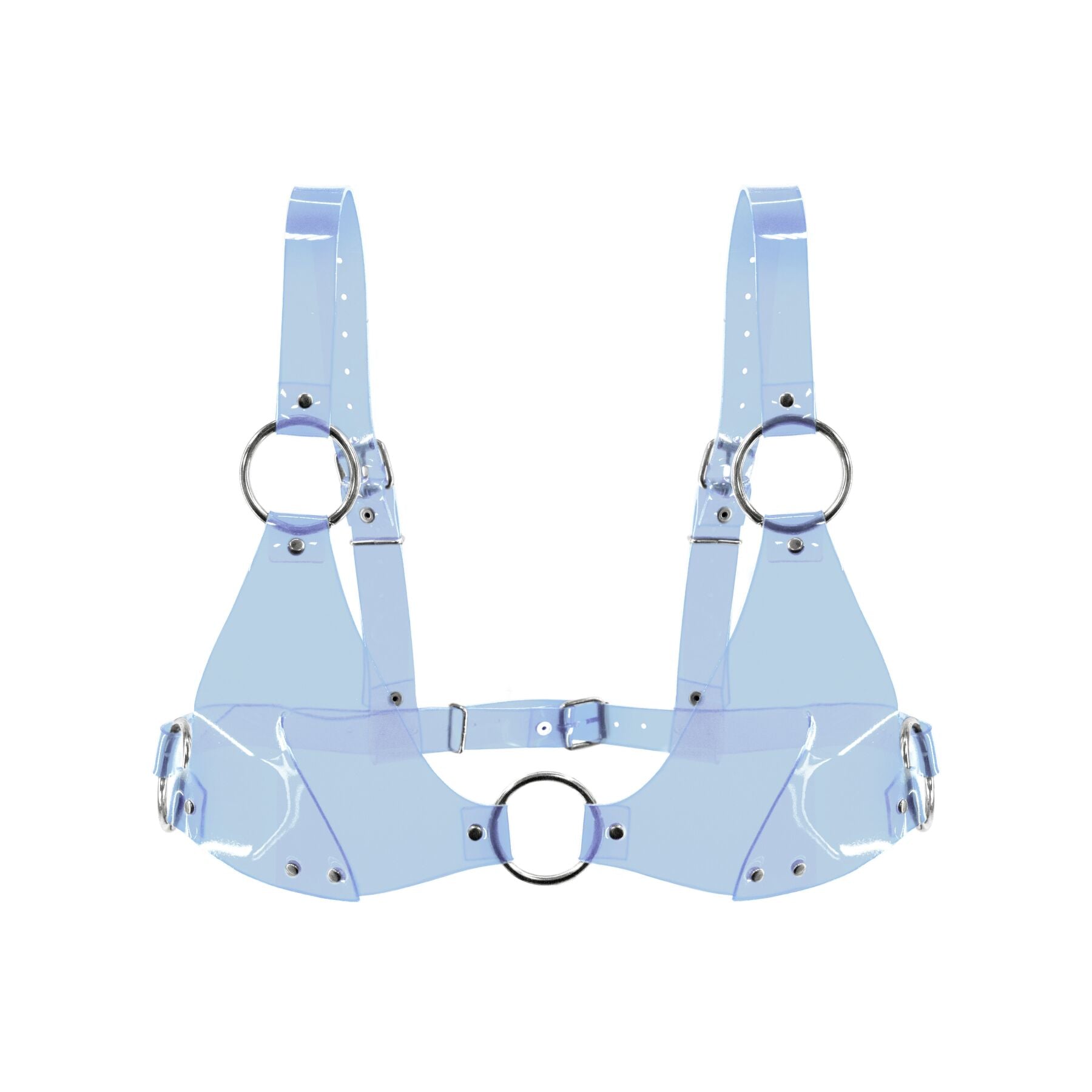 Этот очаровательный и смелый прозрачный топ с чашками — уникальное сочетание стиля и комфорта. Его провокационная прозрачная текстура и блестящая лакированная поверхность сразу привлекают внимание, делая топ идеальным выбором как для BDSM-образов, так и для рейв-вечеринок.
