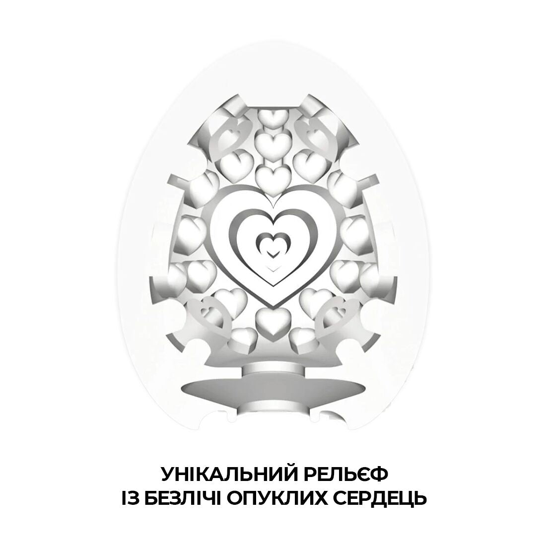 Мягкий и гибкий, мастурбатор Tenga Egg Lovers может адаптироваться к любому размеру пениса, даря нежные и приятные ощущения. Внутренняя текстура состоит из многочисленных выпуклых сердечек, которые нежно массируют как ствол, так и головку, обеспечивая наслаждение каждому миллиметру кожи. Двойное кольцо на входе гарантирует плотное прилегание и незабываемые ощущения во время скольжения.