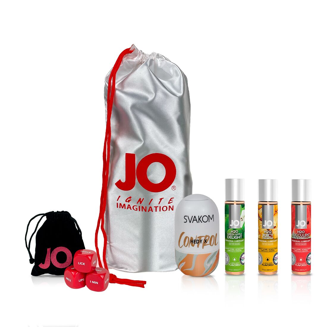 Предлагаем вам приобрести набор «Сочный фрукт» — идеальный вариант для романтичного подарка, который можно сразу же испытать! В наборе вы найдете три вкусных лубриканта (вкус яблока, ананаса и арбуза), яйцо-мастурбатор и игровые кубики для захватывающей прелюдии — все компоненты идеально подобраны. Кубики помогут вам лучше понять сексуальные предпочтения друг друга и добавят элемент игры в вашу близость. Набор упакован в стильный атласный мешочек System JO.