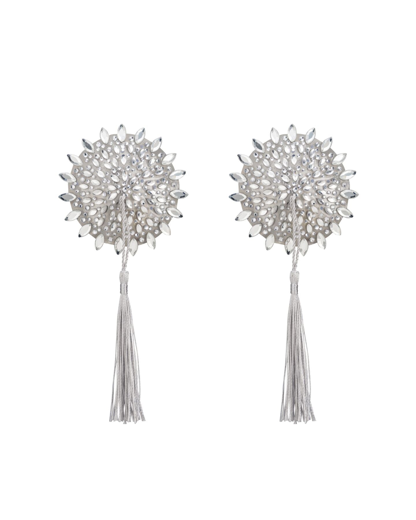 Украшения для сосков Obsessive Mistiqua состоят из круглой основы со стразами и длинными кисточками, которые мило покачиваются в такт вашим движениям. Фиксируйте украшения на тщательно очищенную кожу сосков, чтобы добиться надёжного сцепления. Не используйте перед фиксацией украшений увлажняющие кремы и другие средства, поскольку они значительно снижают степень фиксации на коже.