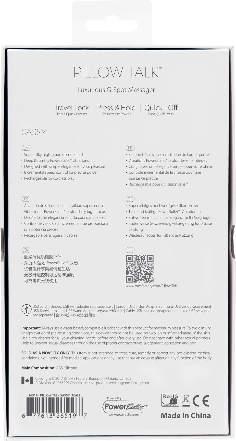 Вибратор для точки G Pillow Talk Sassy с кристаллом Swarovski - это кульминация коллекции Pillow Talk, созданной для эстетического и эротического удовольствия высшего уровня. Упакованный в стильную коробку с обзорным окошком, он станет идеальным подарком, который подчеркнет ваш высокий вкус и особое отношение.