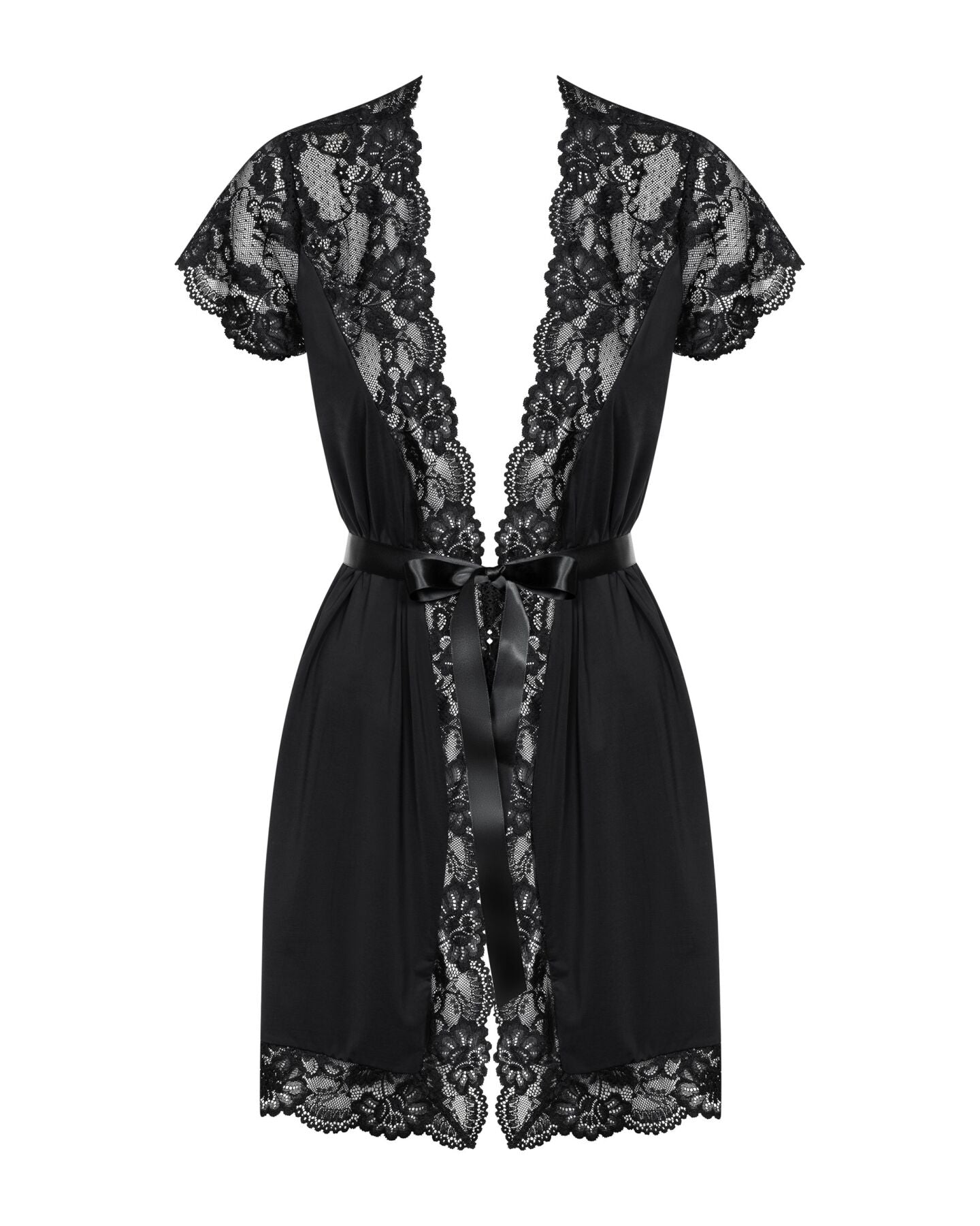 - Сатиновый открытый пеньюар на поясе Obsessive 810-PEI–1 peignoir