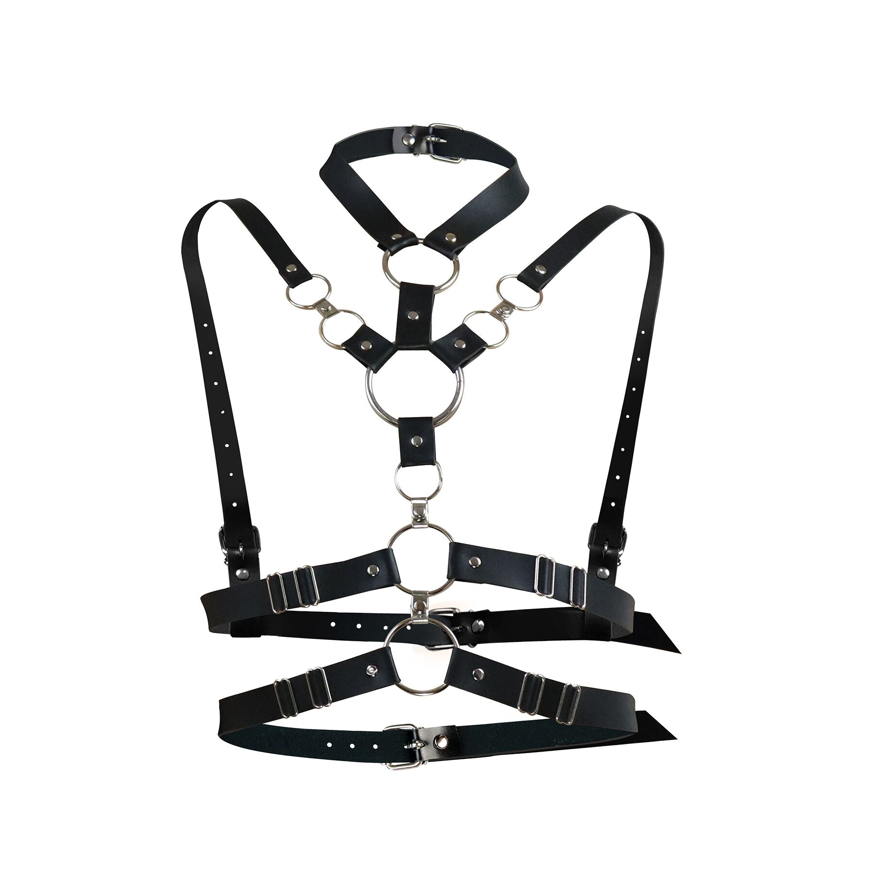 Кожаная портупея оснащена регулируемыми ремнями, которые обеспечивают идеальную посадку по фигуре, подчеркивая красоту вашего тела и акцентируя внимание на ваших формах. Металлические кольца, которые украшают эту портупею, добавляют нотку экстравагантности и создают загадочный образ, который выгодно подчеркивает вашу женственность и сексуальность.