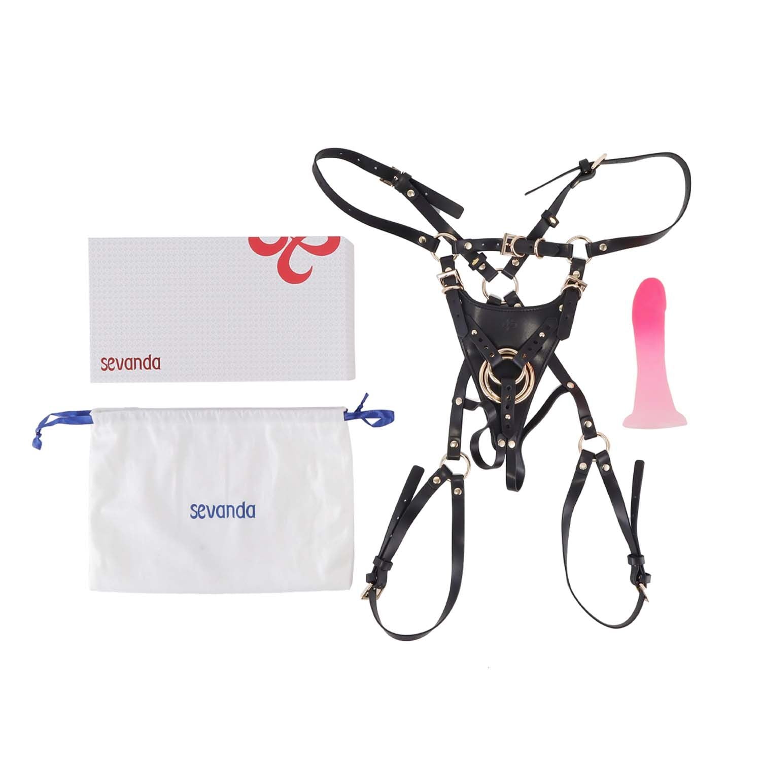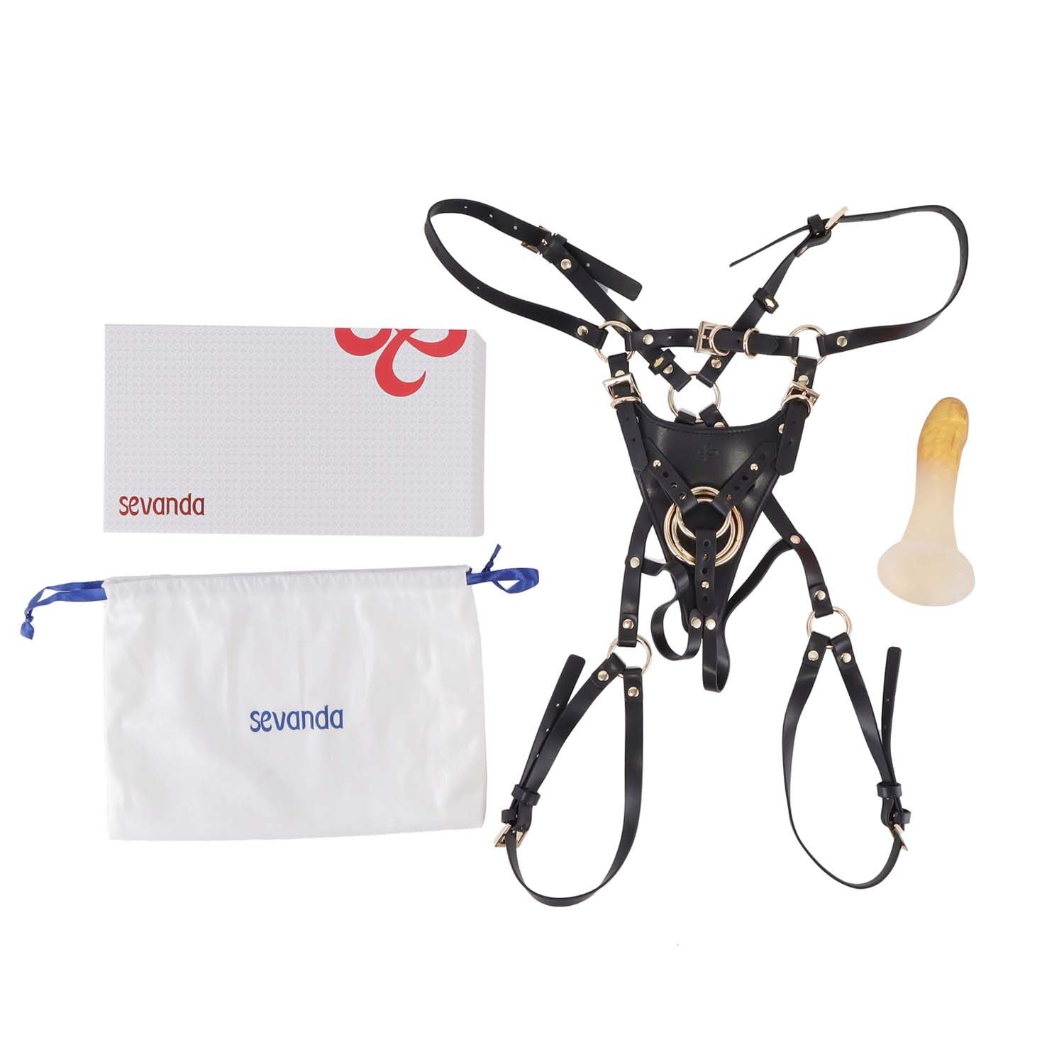 Качественные материалы: Ремни изготовлены из мягкой натуральной коровьей кожи, а фаллоимитатор — из упругого и безопасного силикона. Металлическая фурнитура не содержит никеля.