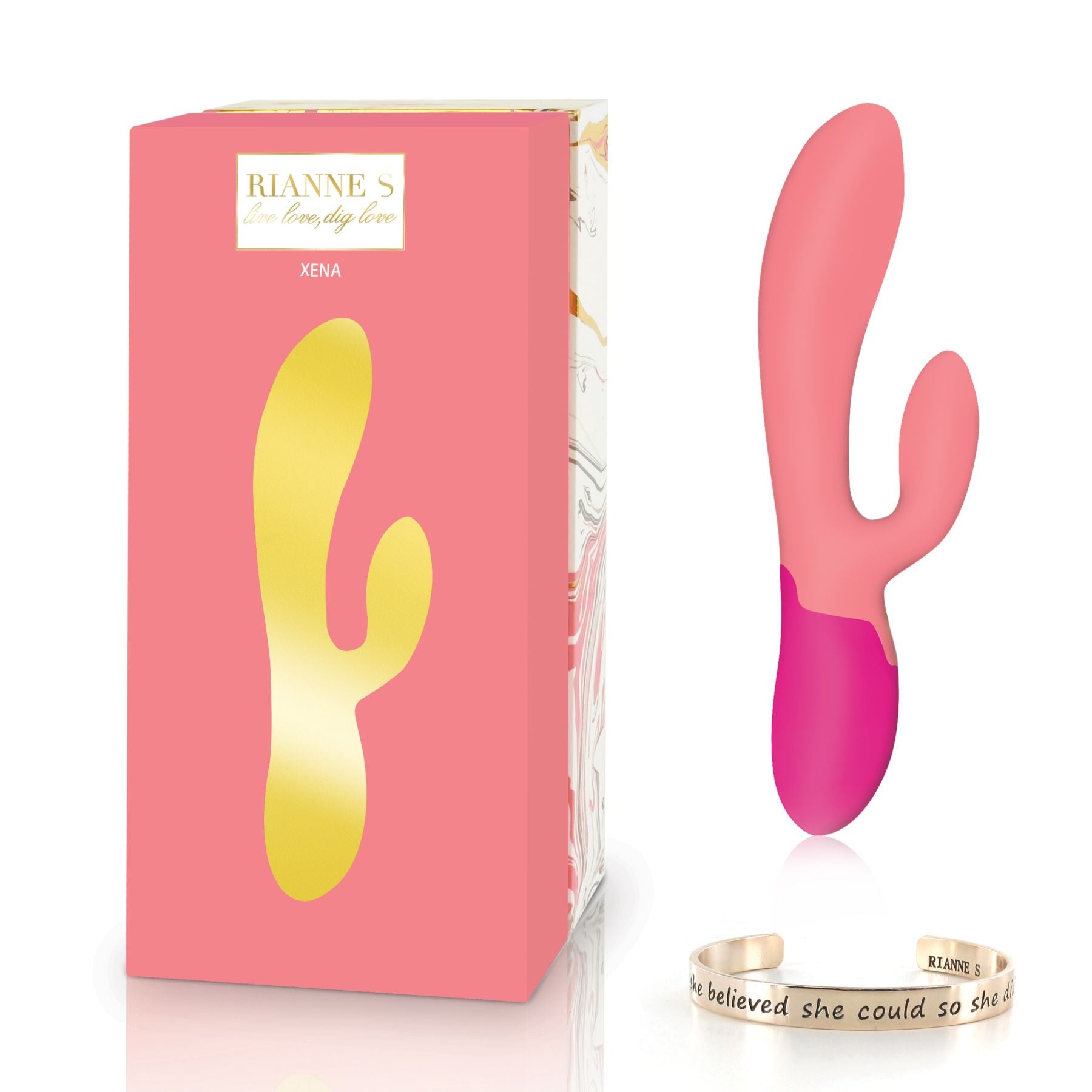 Хотите чего-то более интенсивного? Тогда вам стоит обратить внимание на вибратор-кролик с функцией подогрева RIANNE S – Xena Rabbit Vibrator Coral/Rose. Два мощных двигателя обеспечат двойное удовольствие, а 10 разнообразных режимов с возможностью настройки интенсивности помогут воплотить все ваши желания. Функция подогрева добавит особого комфорта и яркости! В подарок вы получите стильный металлический браслет с надписью.